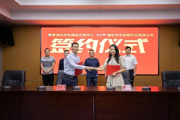 2020年8月25日,青海農(nóng)林牧商品交易中心與平安驛舉行平臺(tái)入駐簽約儀式。平安驛文化旅游有限公司董事長(zhǎng)陳玉良、總經(jīng)理唐旭天、副總經(jīng)理張敏,新立訊科技股份有限公司董事長(zhǎng)毛霖、青海農(nóng)林牧交易中心副總經(jīng)理蘇守梁等嘉賓共同出席簽約儀式,并針對(duì)平臺(tái)業(yè)務(wù)發(fā)展召開座談會(huì)。