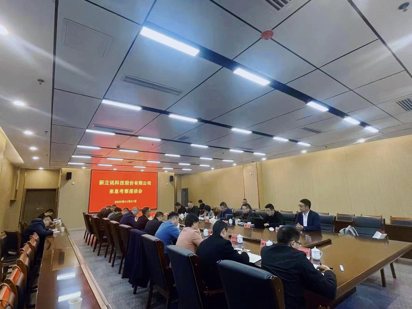 2023年11月22日,新立訊董事長兼總經理毛霖、副總經理李偉等一行赴息烽縣進行實地考察,息烽縣委副書記、縣長何明,副縣長方超,息烽經開區管委會副主任、縣工業和信息化局局長趙坤倫,縣政府辦公室主任楊永春,縣委督辦督查局局長、縣商務局負責人陳舟游,縣農業農村局局長曹廷友,縣投促局局長曾元媛等領導陪同考察并座談。