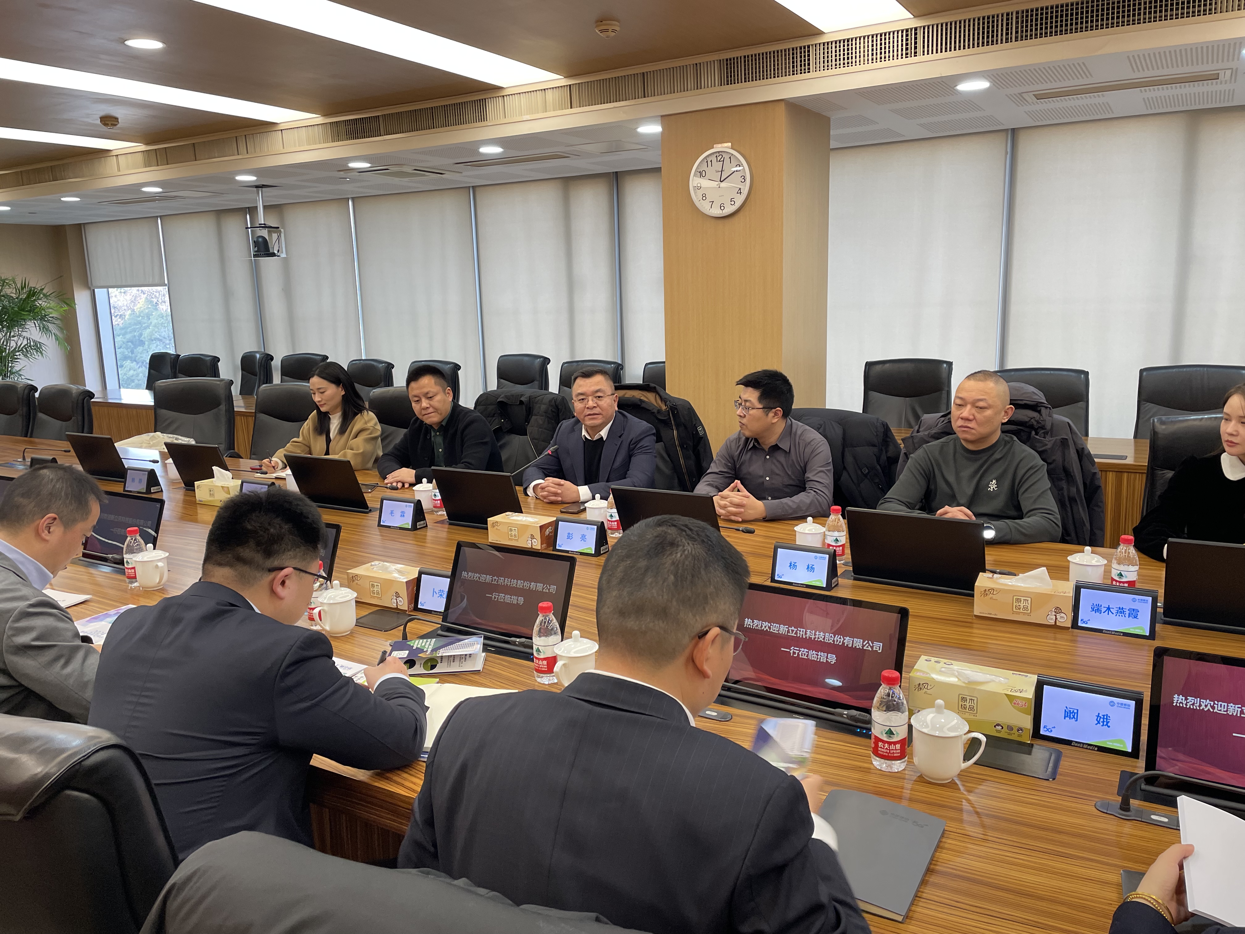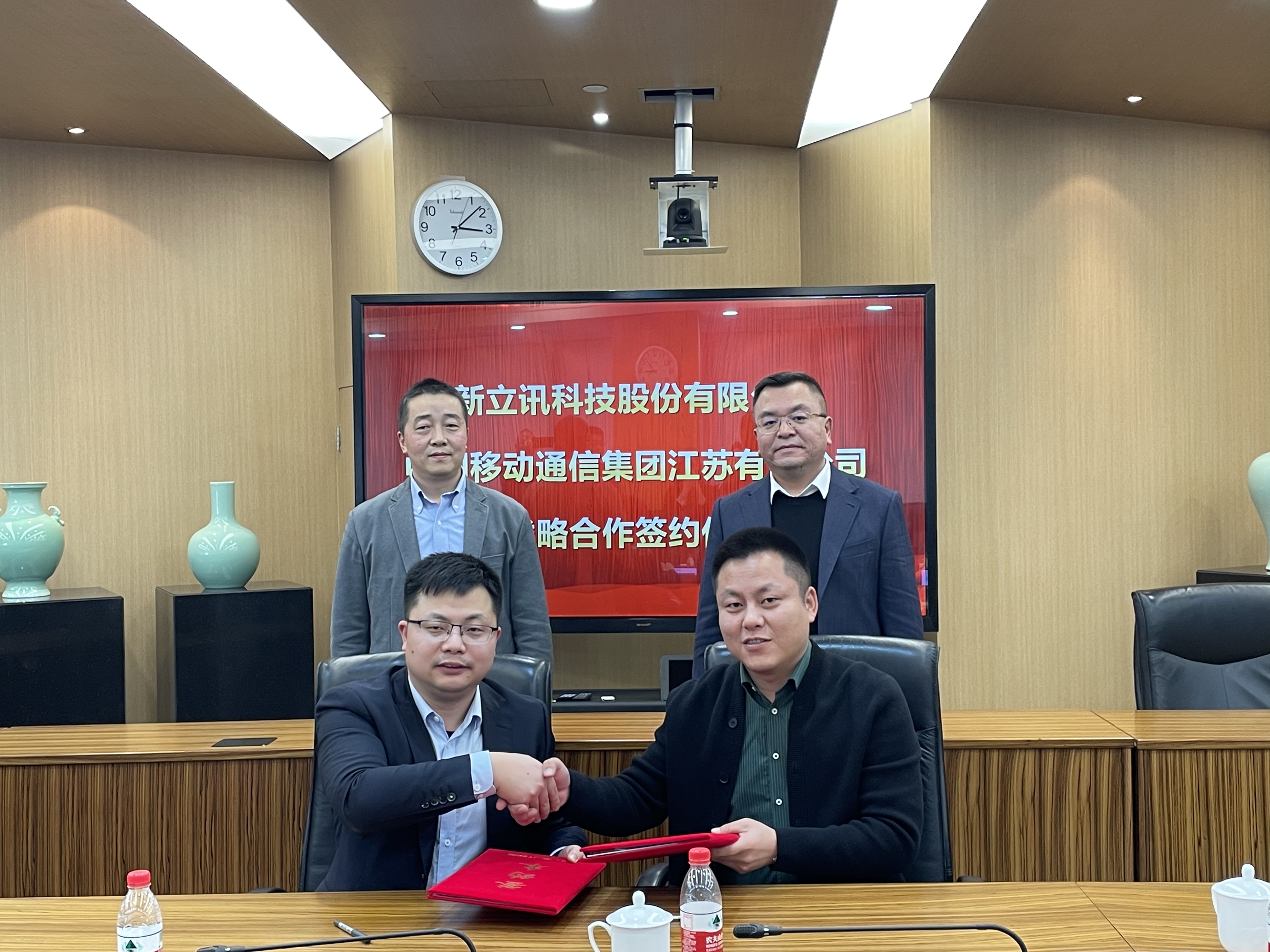 2024年1月25日,新立訊與中國移動通信集團江蘇有限公司在省移動大樓913會議室舉行戰略合作簽約儀式。中國移動通信集團江蘇有限公司省政企客戶中心副總經理陸辰飛,省集團客戶部行業應用中心總經理卜榮勝,南京移動集團客戶部總經理蔡璨,雨花臺移動總經理許文博等移動公司代表出席。新立訊董事長兼總經理毛霖攜財務總監彭亮,華東事業部總經理陳凱,西北事業部總經理楊楊等管理層出席簽約。